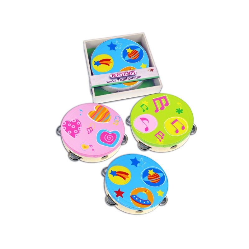 TAMBURELLO CON STRUTTURA IN LEGNO COLORATO CON 6 CIMBALI