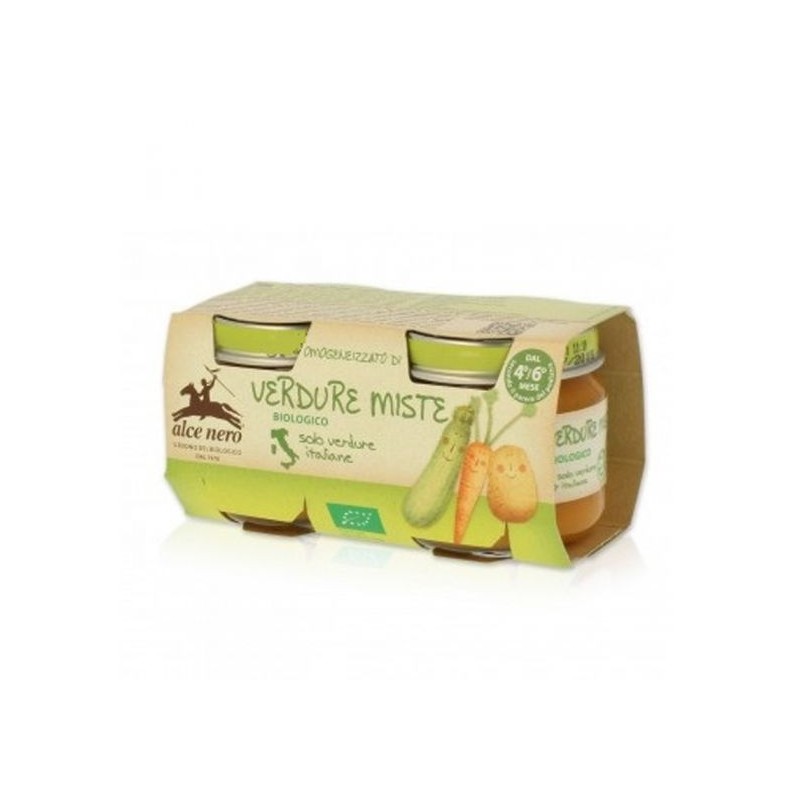L omogeneizzato biologico di verdure miste Alce Nero è prodotto solo con ingredienti italiani le verdure sono coltivate in pieno campo e non in serra Tutte le ricette a basso contenuto di sodio sono pulite dal superfluo studiate per lasciare inalterato il gusto delle verdure e del pesce e permettono di nutrire i bambini senza l utilizzo di aromi coloranti conservanti ed olio