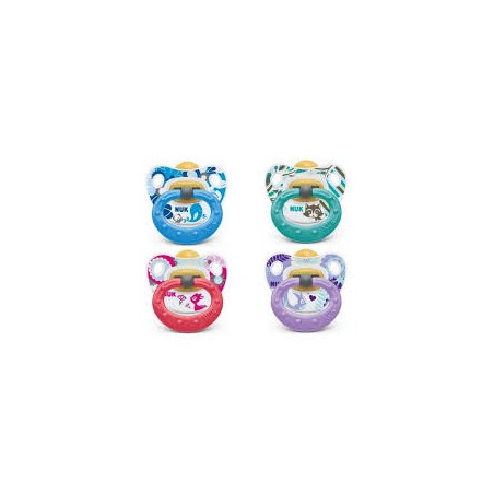 I succhietti NUK Classic Assortiti in lattice hanno la forma ortodontica NUK lo scudo di forma anatomica e motivi adatti al mondo colorato dei bambini