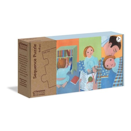 Ogni confezione contiene 4 puzzle da 8 tessere che raffigurano quattro diverse routine della vita di tutti i giorni: l'andare a nanna, il risveglio, fare una torta e fare il bagnetto