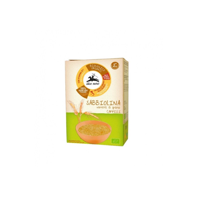 La sabbiolina della Linea Baby Alce Nero è prodotta con grano duro Cappelli italiano La sabbiolina di grano duro Cappelli bio Alce Nero è prodotta utilizzando la storica varietà di grano duro che deve il suo nome all omonimo senatore abruzzese promotore agli inizi del 900 della riforma agraria che portò alla distinzione tra grani duri e teneri Il nostro grano viene coltivato in Italia La sabbiolina di grano duro Cappelli bio Alce Nero è prodotta con l aggiunta di vitamina B1