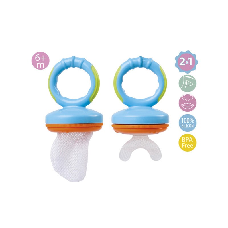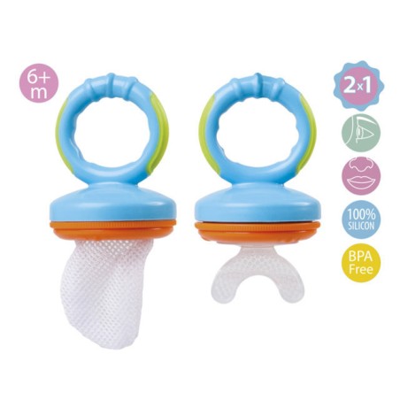 E' uno strumento indispensabile per introdurre nuovi sapori e consistenze nella dieta del bambino senza il pericolo di soffocamento poiché il bambino morde e si nutre estraendo il succo ma i pezzi verranno trattenuti all interno della rete Include una rete di scorta e una cappa protettiva per una migliore conservazione e trasporto