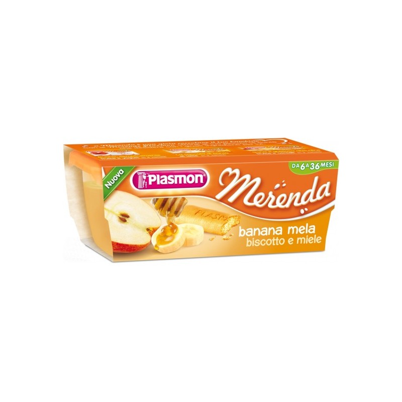 MERENDA DEI BAMBINI BANANA MELA BISCOTTIO E MIELE 2 VASCHETTE 120 GRAMMI