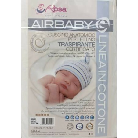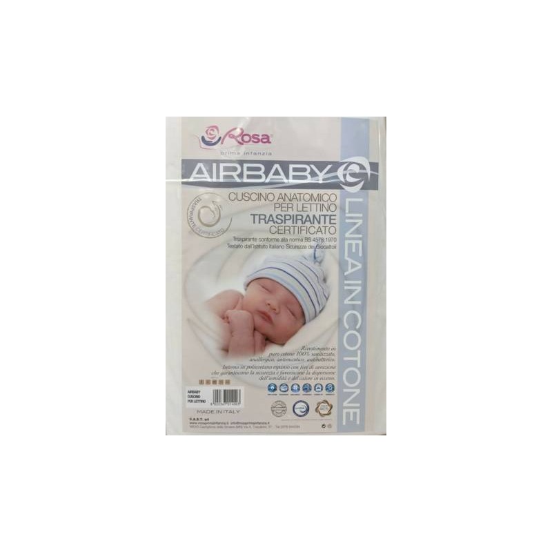 Cuscino Aribaby Per lettino realizzato da Rosa Prima Infanzia in poliuretano espanso con fori di sicurezza e il rivestimento è in cotone 100 sanitizzato anallergico e antibatterico sfoderabile e lavabile in lavatrice Il cuscino per lettino è sagomato all altezza del collo per un maggior comfort