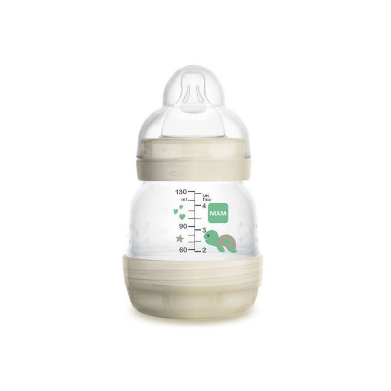Innovativo biberon Mam completo di tettarella in SilikonSeta e base auto sterilizzante Il SilikonSeta è un materiale brevettato ultramorbido liscio come la seta che stimola il bambino ad una deglutizione fisiologica come quella naturale al seno materno La tettarella ortodontica è completa di piccole scanalature per un flusso omogeneo del latte una base allargata per assomigliare al seno materno e una forma simmetrica per facilitare il bebè alla suzione Il biberon First Bottle è dotato inoltre di una valvola anticolica posta sulla parte inferiore della bottiglia che assicura un flusso del liquido uniforme riducendo l insorgenza di coliche e otiti