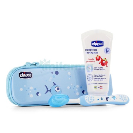 Un pratico set per prendersi cura dell igiene orale del tuo bambino anche fuori casa o all asilo Contiene uno spazzolino da denti e un dentifricio alla fragola