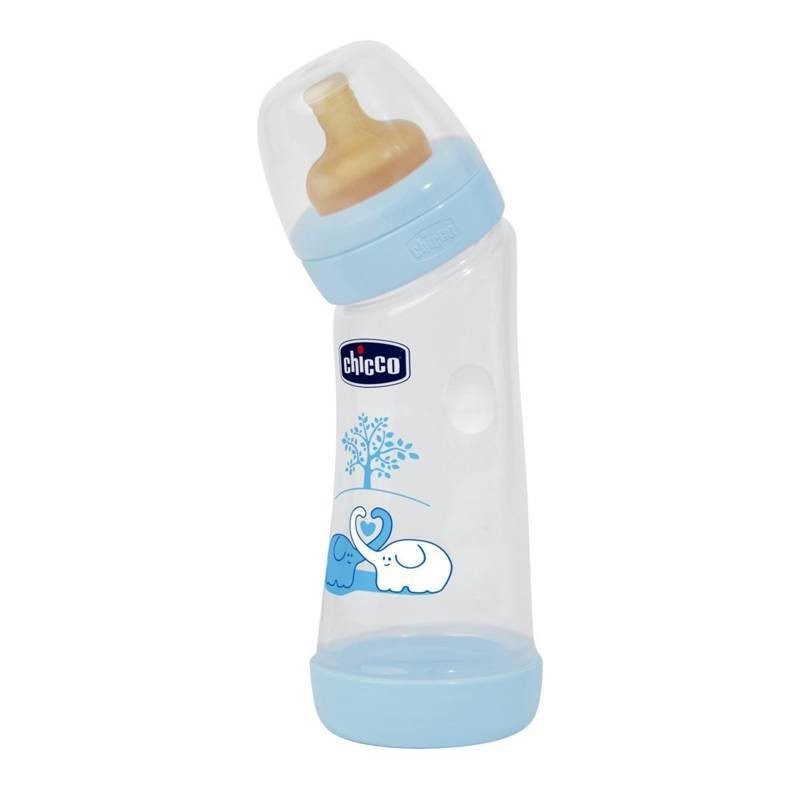 Primo Biberon Benessere angolato Ideale per i neonati per una poppata continua e serena Disponibile sia in silicone che in caucciù Formato 250 ml In versioni bimbo e bimba La linea Biberon Benessere da massimo benessere per il bambino massima serenità per la mamma