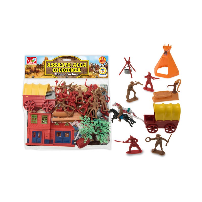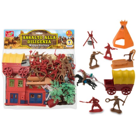 BUSTA INDIANI E COWBOY CON MAPPA E ACCESSORI 33 PEZZI