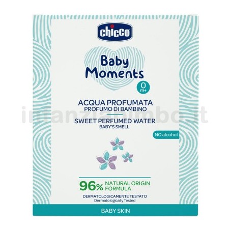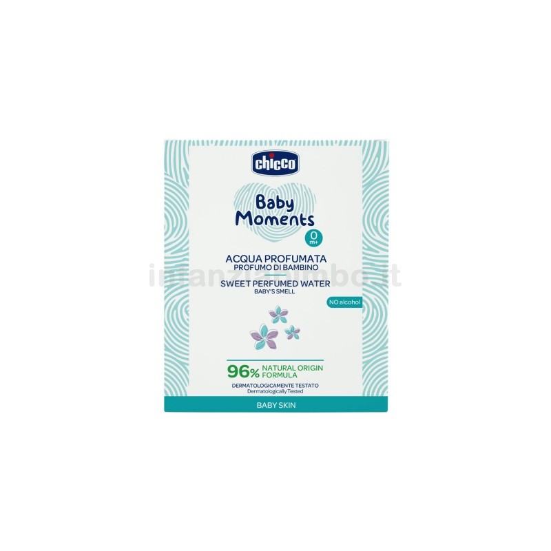 Formula 96 di origine naturale e senza alcool Una delicata fraganza per avvolgere il tuo bambino in un morbido abbraccio profumato Dermatologicamente testato su pelli sensibili