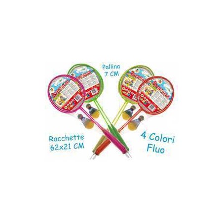 SET 2 RACCHETTE BADMINTON FLUO CON VOLANO E PALLINA