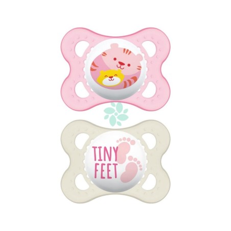 MAM Succhietto Original Tiny Feet è il ciuccio ispirato dalla moda baby Elementi di design brevettati Con tettarella SkinSoft in silicone ortodontico e non irrita la pelle Nella pratica confezione per la sterilizzazione e il trasporto