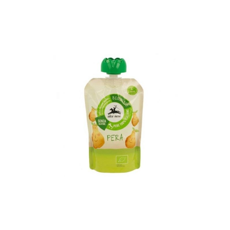 La purea di pera Alce Nero è prodotta senza zuccheri aggiunti con solo frutta raccolta al giusto grado di maturazione
