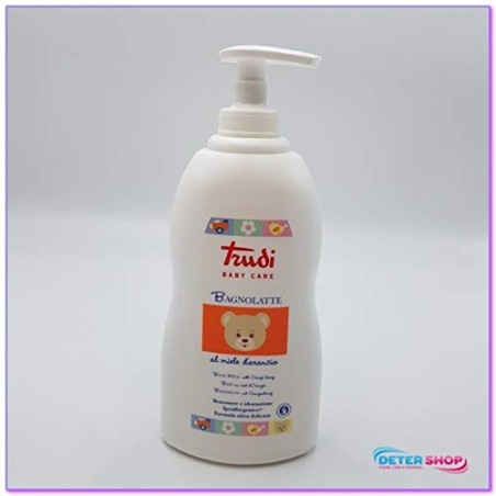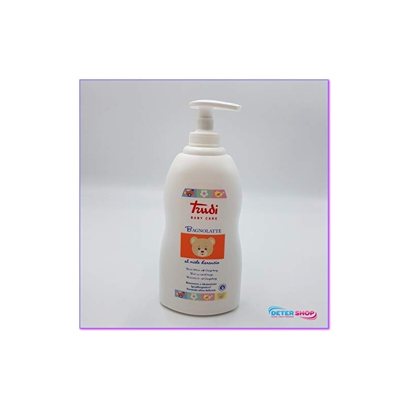 Trudi Baby Care Bagnolatte al Miele d Arancio Il bagnolatte Trudi Baby Care contiene esclusivamente detergenti delicati derivati dalla lavorazione della palma da cocco La composizione rigorosamente neutra è stata studiata in modo da minimizzare i rischi di irritazioni La presenza del miele d arancio emolliente e addolcente favorisce il rilassamento del bambino durante il bagnetto serale prima della nanna