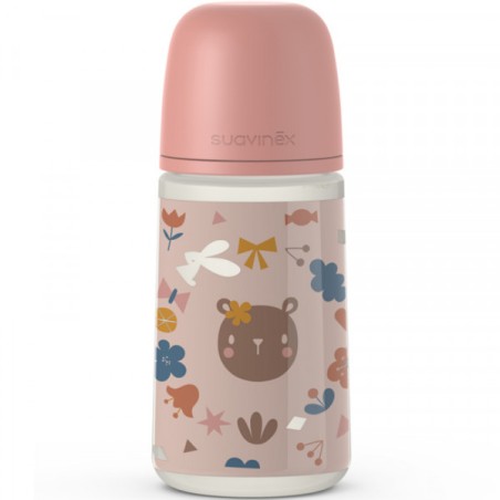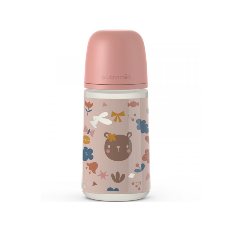 Il biberon con tettarella simmetrica SX PRO M Into the forest rosa cipria del marchio Suavinex rispetta lo sviluppo orale del bambino e consente l allattamento artificiale naturale