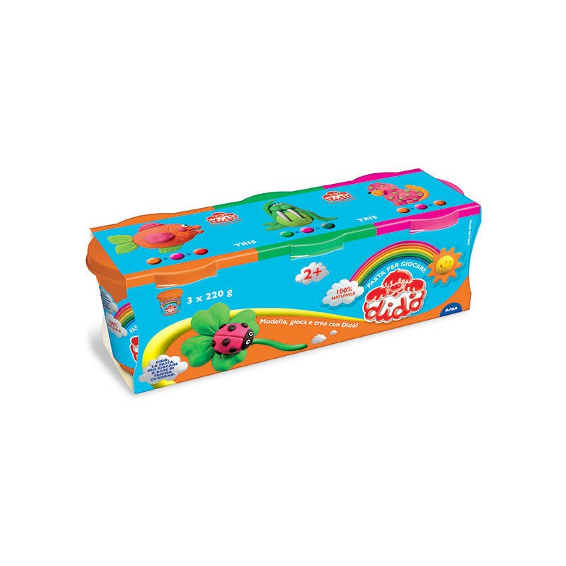 Pasta per giocare Didò Tris non macchia è morbida e innocua Il set è composta da 3 barattoli da 220 gr ciascuno in colori assortitii