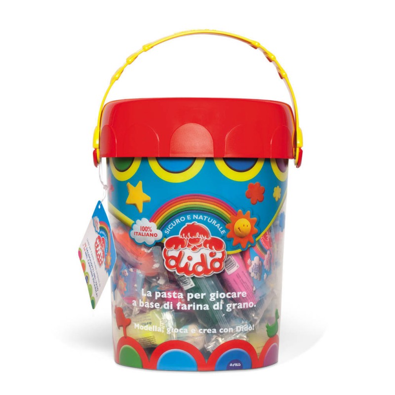 Vaso Didò 100 salsicciotti di pasta Didò in colori assortiti confezionati uno per uno Tutti nel comodo contenitore con coperchio