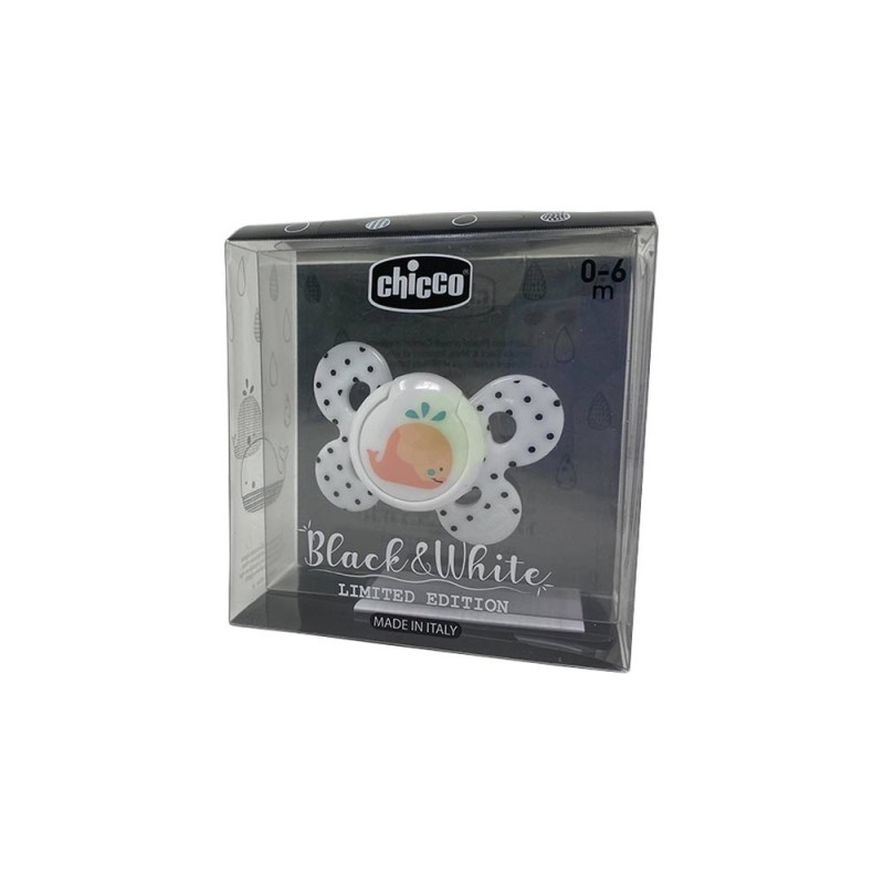 Chicco PhysioForma Comfort Limited Edition Black White in silicone grazie alla sua esclusiva forma supporta la respirazione fisiologica e lascia la pelle libera di respirare garantendo massima areazione alla pelle del bambino