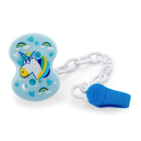 Chicco Fantastic Love pratica Clip con Catenella per succhietto 0m pensata per fissare in modo semplice e pratico il succhietto ai capi di abbigliamento del bambino Colore e fantasia secondo disponibilità