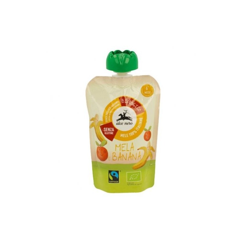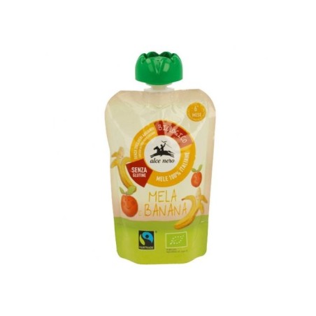 La Purea di Mela e Banana in Doypack è un prodotto alimentare naturale perfetto per merenda dei più piccoli dal 6 mese in poi