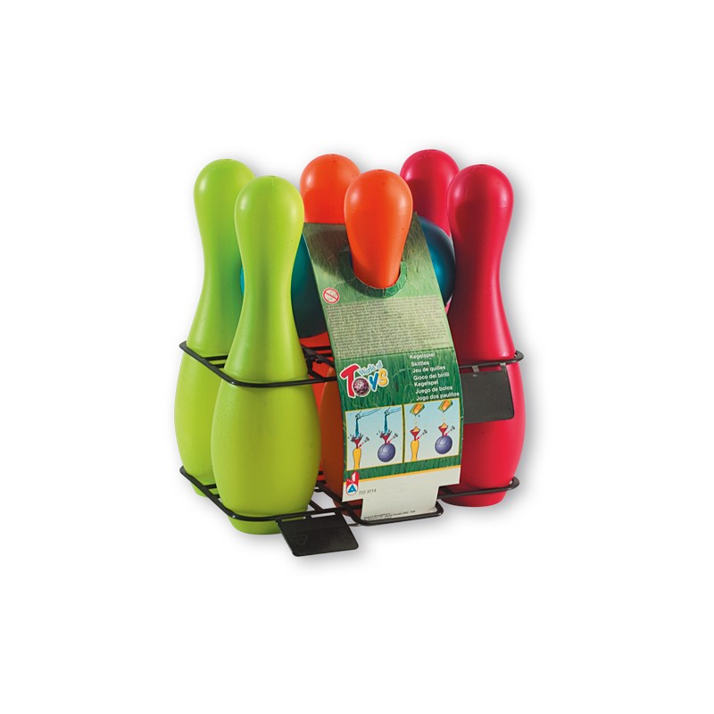 la confezione contiene 6 birilli e 2 palline
