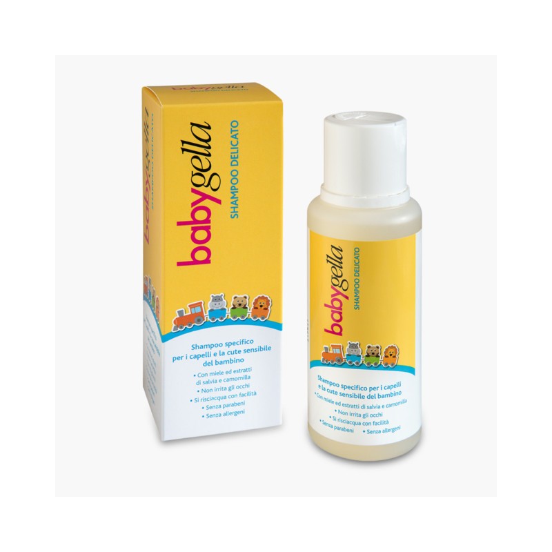 Babygella shampoo delicato indicato per la detersione dei capelli del bambino Deterge i capelli lasciandoli lucidi e facilmente pettina bili nel rispetto della cute sensibile del bambino I tensioattivi impiegati rendono la sua azione particolarmente delicata Svolge anche un azione blandamente antimicrobica e lenitiva grazie alla presenza degli estratti di Salvia officinalis e Camomilla Non irrita e non fa bruciare gli occhi pH 7 5 compatibile con quello lacrimale senza parabeni senza allergeni dermatologica mente testato Istruzioni 1 Applicare una piccola quantità di shampoo delicato sui capelli bagnati 2 Frizionare leggermente il cuoio capelluto 3 Risciacquare con acqua tiepida