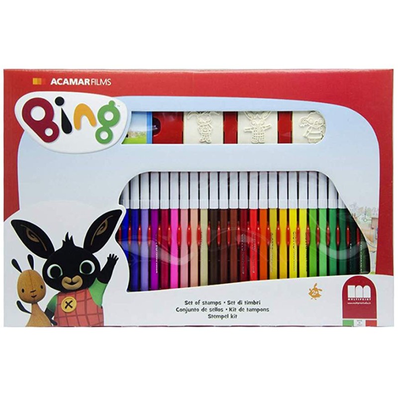 CONFEZIONE IN CARTONE LUNGA 86 CM CONTENENTE 4 TIMBRI IN LEGNO E GOMMA 1 INCHIOSTRO BLUE LAVABILE 30 ADESIVI 1 ALBUM DA TIMBRARE E COLORARE 60 PENNARELLI GIOTTO TURBO COLOR