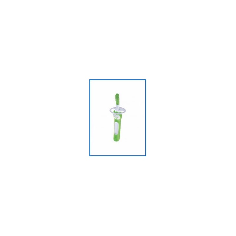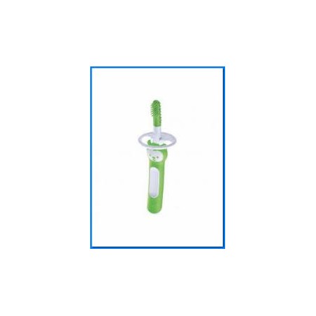 Confezione mam massaging brush spazzolino per igiene orale bimbi 3 mesi 1 protezione per la gola senza bpa e bps istruzioni in italiano verde articolo numero 9001616706905