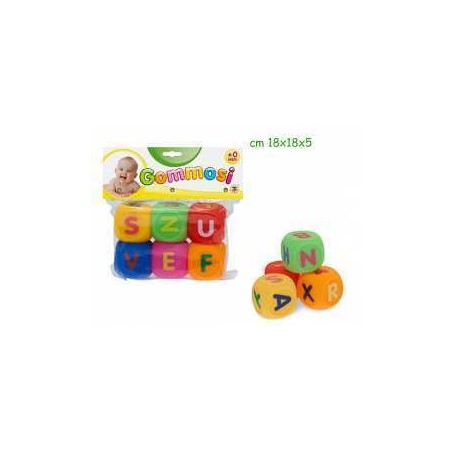 Cubi colorati in gomma numeri e lettere 6 pz Lato cm 5