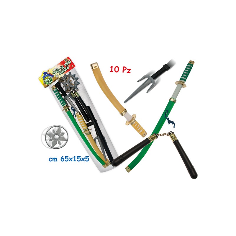 Ninjia set cdiventa un piccolo samurai continene 10 pezzi 3 colori in assortimento