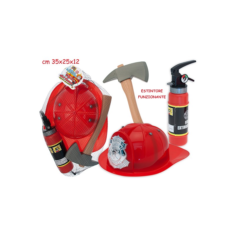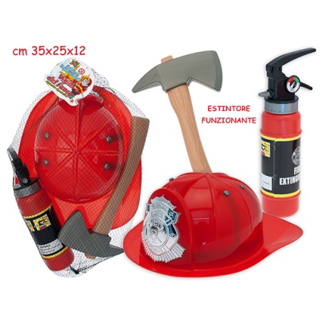 SET VIGILI DEL FUOCO CON ESTINTORE E CASCO