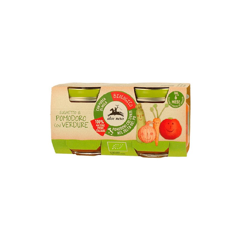 Il sughetto di pomodoro con verdure Alce Nero è prodotto con pomodori coltivati in Italia e raccolti al giusto grado di maturazione In aggiunta purea di mela per rendere il sapore gradevole per i p