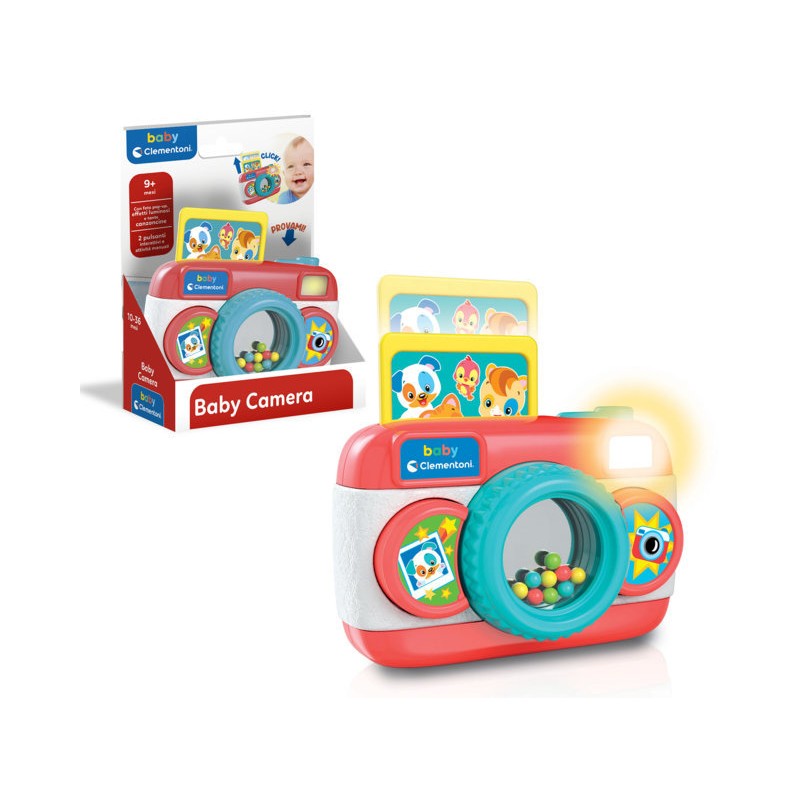 Una coloratissima macchina fotografica dal design ricercato e curato nei minimi dettagli per ascoltare simpatiche canzoncine o divertenti versi di animali ad ogni scatto