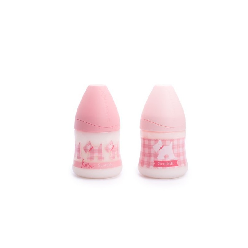 Biberon in polipropilene con collo largo da 150 ml con tettarella anatomica in silicone Misura S1M Colore Rosa