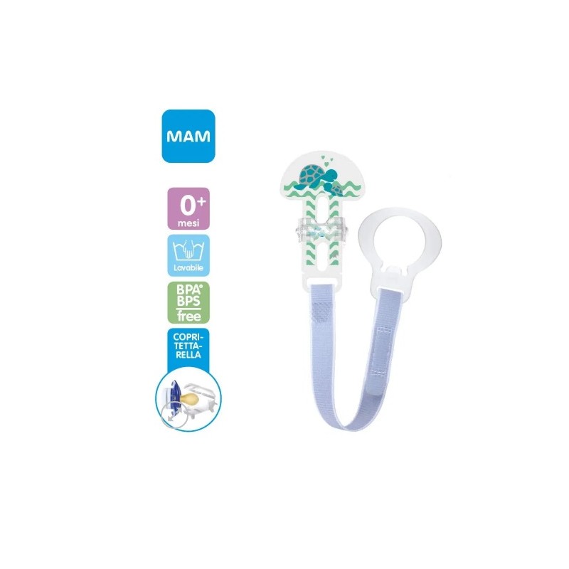 Salva succhietto oltre alle pratica catenella per ciuccio è compreso un porta tettarella mam per proteggere igienicamente il ciuccio e riporlo con cura
