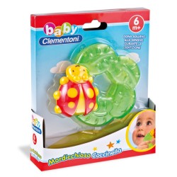 a coccinella mordicchiosa è dotata di un anello di foglie in morbida plastica ripiena di liquido refrigerante che dona sollievo alle gengive durante la dentizione