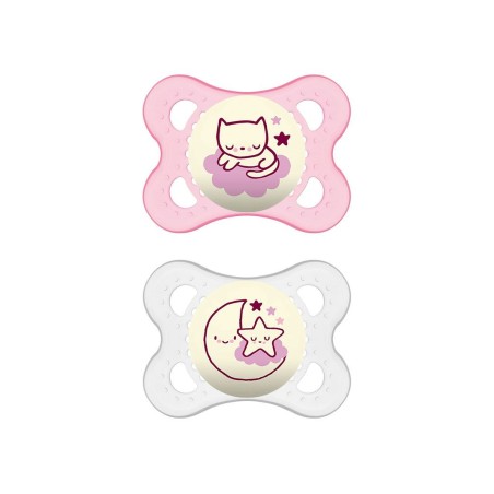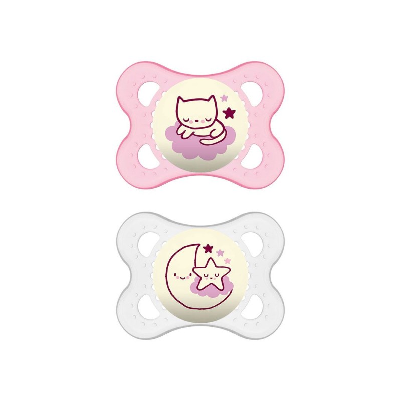 2 SUCCHIETTI MAM ORIGINAL NIGHT SKIN SOFT SILICONE 2 6 MESI GIRL