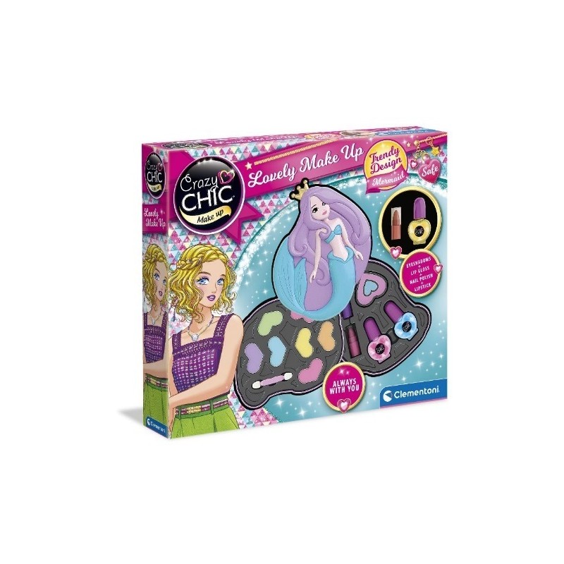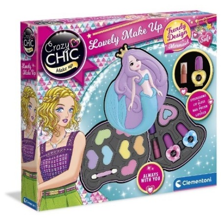 Una trousse che si ispira all icona trendy del momento con 2 vassoi ricchi di ombretti rossetti e smalti anche in aggiunta per avere sempre una ricarica da portare con sé La sirena è uno dei must del design nell ultimo periodo Per questo la linea Crazy Chic sceglie di realizzare una trousse da viaggio ispirata alla regina dei mari per essere sempre trend setter Per un trucco magico ci sono anche 3 smalti e 3 rossetti oltre alla trousse da usare come ricarica per non smettere mai di divertirsi con le amiche e provare ogni volta un look diverso I trucchi della trousse sono sicuri perché testati e certificati per far giocare e divertire le bambine in completa sicurezza e sono facilmente removibili con acqua La sirena sfoggia una coroncina dorata l elemento caratterizzante della nuova linea di trucchi Crazy Chic tutti da collezionare Trucchi per bambini ideali a partire dai 6 anni