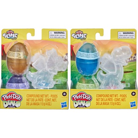 Immergiti nel divertimento e crea il tuo dinosauro con queste uova di dinosauro Play Doh Ogni uovo è riempito con un composto Play Doh Slime liscio e scivoloso e ossa di dinosauro di plastica Metti insieme lo scheletro del dinosauro e riempi lo stampo del dinosauro con i due colori per creare il tuo dinosauro giocattolo 2021 VIACOM INTERNATIONAL INC Tutti i diritti riservati SLIME e tutti i titoli loghi e personaggi correlati sono marchi di Viacom International Inc Hasbro Play Doh e tutte le proprietà correlate sono marchi di Hasbro