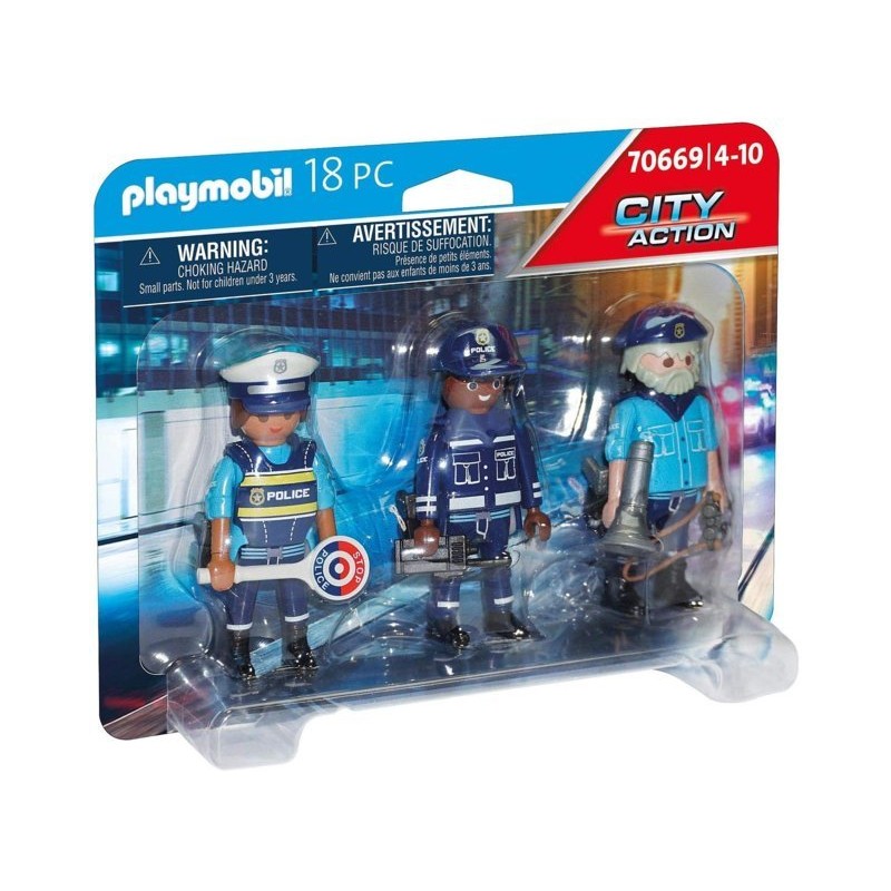 C è sempre bisogno di polizziotti coraggiosi rinforza la tua squadra con il set Squadra di Polizia Tre agenti dotati di megafono radio e tanti accessori