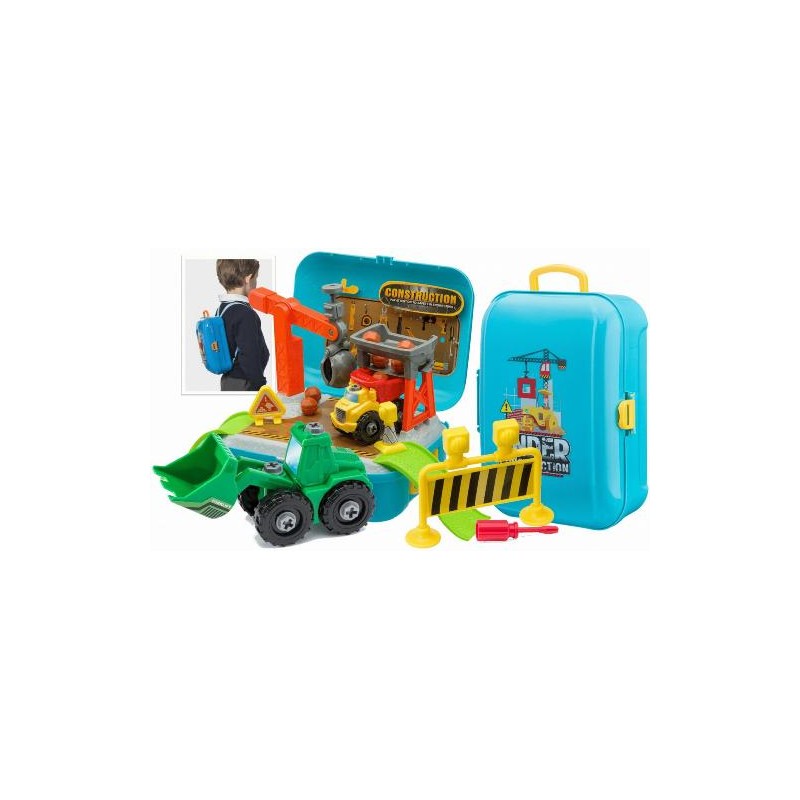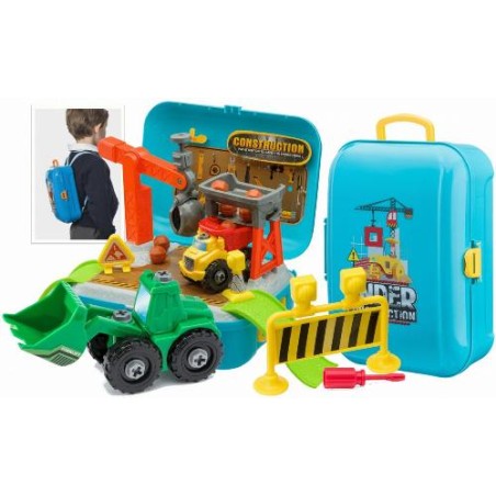 zainetto lavori in corso completo di ruspa e camion smonta e rimonta