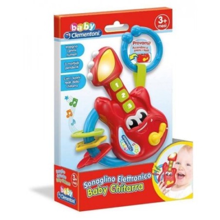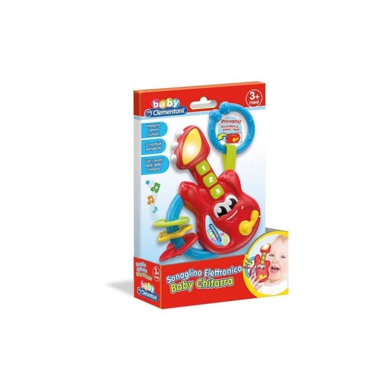 Questa simpatica chitarra con 3 tastoni in gomma farà divertire il bambino suonando divertenti melodie e lo porterà alla scoperta dei primi num