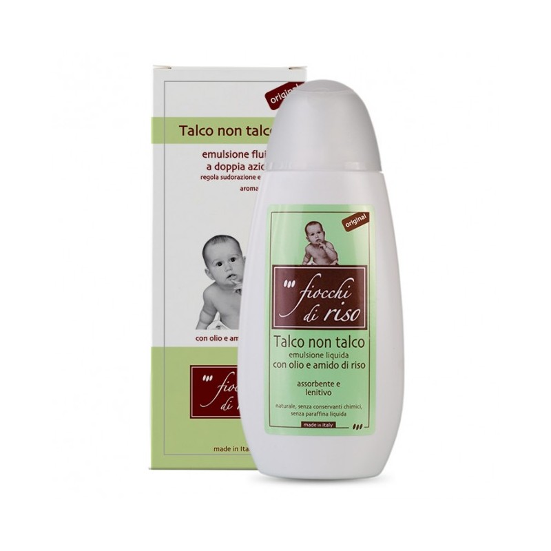 Il Talco non Talco da 120 ml di Fiocchi di Riso è un emulsione fluida che con la sua formula innovativa a base di sostanze naturali regola sudorazioni e odori che disorienta gli insetti per questo è anche un ottimo antizanzare