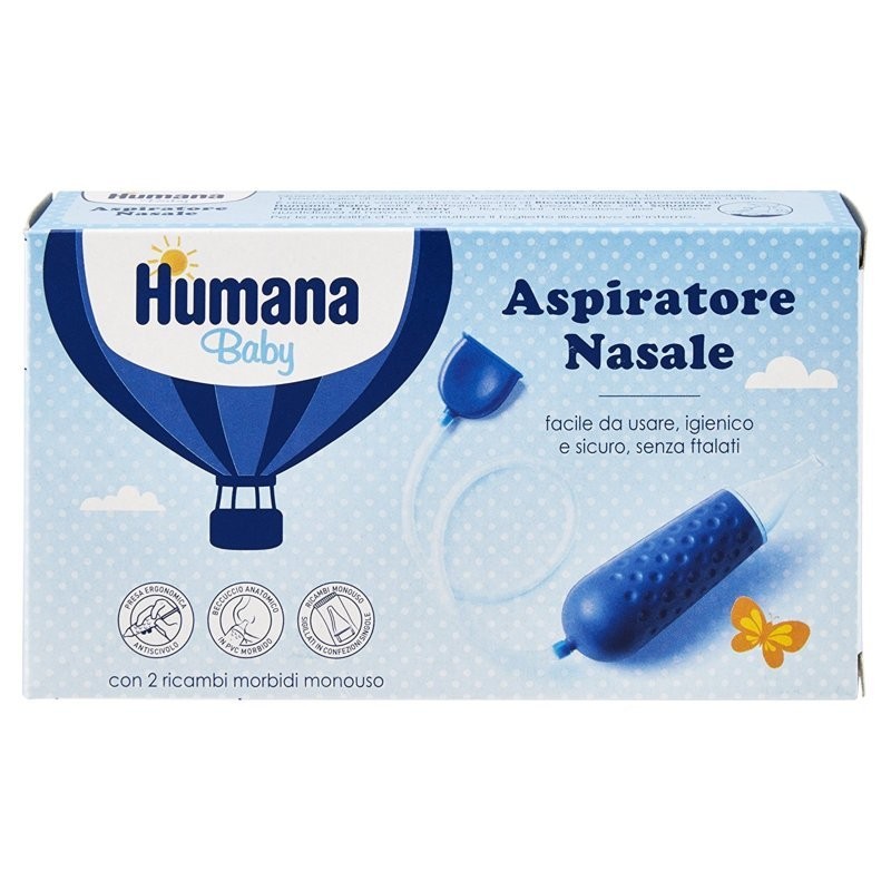 Humana Benessere ASPIRATORE NASALE Indicazioni per la pulizia nasale contribuisce a ridurre i casi di infezioni respiratorie Utilizzabile dal 2 mese compiuto Caratteristiche Dispositivo Medico CE Rimuove il muco in modo più facile e delicato Formato confezione con aspiratore nasale 2 ricambi morbidi usa e getta Cod 7530