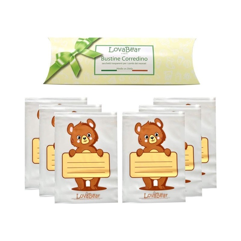 TUTTO IN ORDINE E PULITO Una volta lavato gli indumenti del neonato riponili al sicuro nelle bustine Lovabear alla larga da polvere batteri e chi ne ha più ne metta Grazie allo spazio dedicato per scrivere nome e data potrete suddividere il corredino del bebè giorno per giorno in modo che se voi foste impossibilitate il vostro compagno possa agevolmente trovare il sacchetto primo giorno e consegnarlo alle puericultrici senza paura di sbagliare