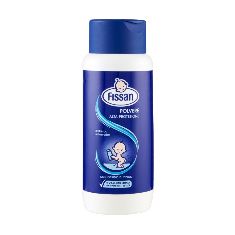 La polvere di fissan alta protezione arricchita con Ossido di Zinco è consigliata per proteggere e prevenire arrossamenti e irritazioni causati dallo sfregamento con il pannolino o da altri fattori esterni quale per esempio la sudorazione Grazie al Talco puro presente nella sua formula la Polvere di Fissan Alta Protezione favorisce una normale traspirazione ed esercita sulla pelle umida o sudata una delicata azione assorbente e rinfrescante lasciandola morbida e asciutta