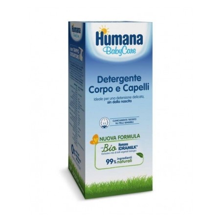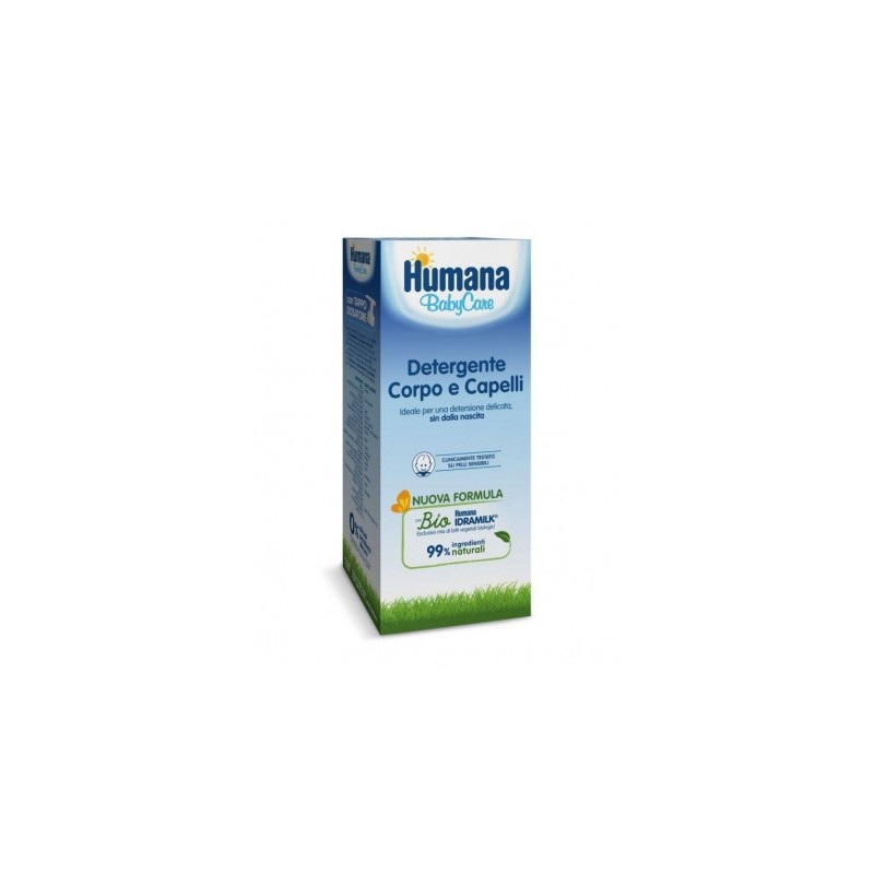 Humana Baby Care Detergente Corpo e Capelli 300ml Ideale per una detersione delicata e quotidiana sin dalla nascita Deterge deliacamente i capelli e il cuoio capelluto comprovata compatibilità oculare non brucia gli occhi
