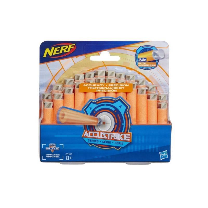 Gli speciali dardi AccuStrike sono stati progettati per garantire maggiore accuratezza nei tiri anche se la precisione varia in funzione dell abilità di chi tira e di varie condizioni esterne il profilo di questi dardi è disegnato in modo tale da offrire meno resistenza all aria e mantenere la potenza di lancio Questi dardi sono compatibili con tutti i blaster della serie N Strike Elite