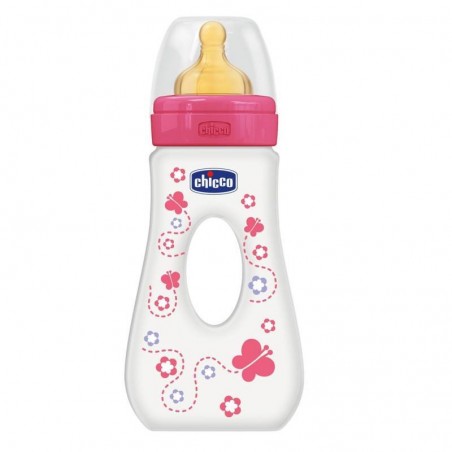 Biberon Passeggio Con tettarella fisiologica con valvola anticolica disponibile sia in silicone che in caucciù Pensato per la crescita del bambino grazie alla bottiglia ergonomica con doppia impugnatura Presa Facile soddisfa il suo bisogno di autonomia nel bere accompagnandolo in questa piccola conquista Formato 240 ml Disponibile in diverse decorazioni
