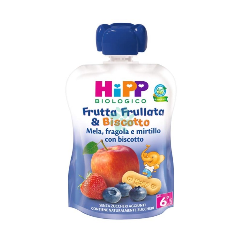 ATTENZIONE L IMMAGINE VISUALIZZATA SUL SITO HA SOLO SCOPO ILLUSTRATIVO TUBETTO FRUTTA FRULLATA MELA FRAGOLA E MIRTILLO CON BISCOTTO 90 GRAMMI