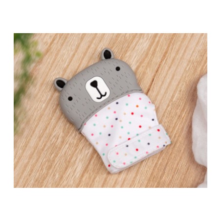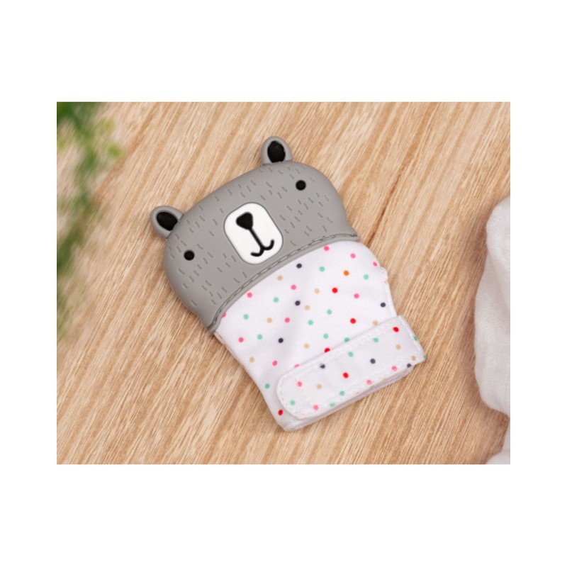 Per questo abbiamo una collezione completa di massaggiagengive molto facili da impugnare con diversi colori e consistenze per massaggiare le gengive e migliorare i sintomi della dentizione del tuo bambino In particolare questo è l ideale per i più piccoli che ancora non tengono il massaggiagengive con facilità ma hanno bisogno di mettergli un pezzo in bocca per alleviare il loro disagio Ed è sotto forma di un guanto che si regola con velcro al polso permettendo al bambino di non dipendere dal suo controllo delle mani e può mordicchiare l estremità in silicone molto morbida e adatta a stimolare le gengive